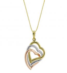 10K Tri-Colour 3-Heart Double Sided Pendant