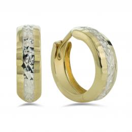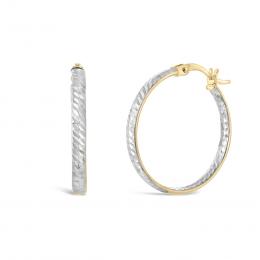 10K Yellow and White Gold Diamond Cut Hoops