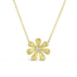 10K Yellow Gold Cubic Zirconia Flower Necklace