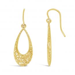 10K Yellow Gold Diamond Cut Oval Hoop Earrings