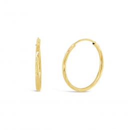 10K Yellow Gold 2x20mm Diamond Cut Hoop Earrings