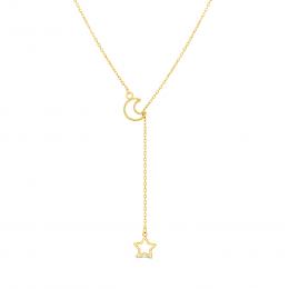 10K Yellow Gold Moon and Star Drop Necklace