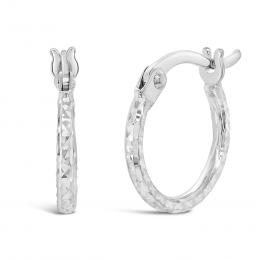 14K White Gold 1.5mm x 10mm Diamond Cut Polished Hoops