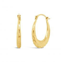14K Yellow Gold 20mm Oval Textured Creole