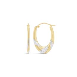 14K Yellow & White Gold 25x17mm Oval Hoop Earrings