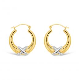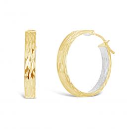 10K Yellow and White Gold Diamond Cut Twisted Hoops