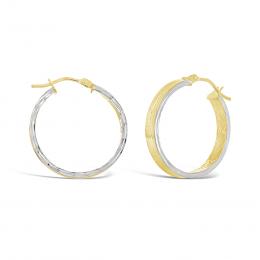 10K Yellow and White Gold Diamond Cut Inside Out Hoops