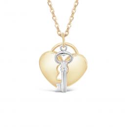 10K Yellow and White Gold 18" Heart Lock Necklace