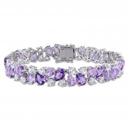 Julianna B Sterling Silver Rose De France Amethyst & Created Sapphire Bracelet