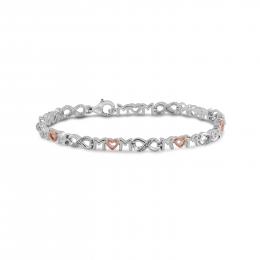 Sterling Silver 10K Rose Gold Diamond Heart Bracelet