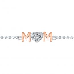 Sterling Silver & Rose Gold Diamond Mom Bracelet