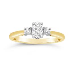 New Brilliance 14K Yellow Gold Lab Grown 2.00CTW Oval Diamond Three-Stone Ring