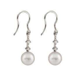 14K White Gold 7-8mm Akoya Pearl & Diamond Earrings