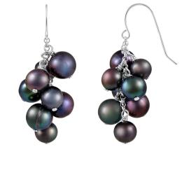 Sterling Silver 7-7.5mm Black Freshwater Pearl Earrings