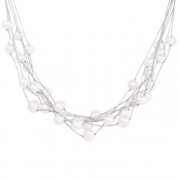 Sterling Silver 7-8mm Multirow Threaded White Pearl Necklace