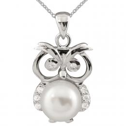 Sterling Silver Owl 8-9mm Pearl Pendant