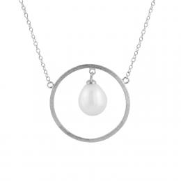 Sterling Silver Brushed Finished 8-8.5mm Pearl Pendant