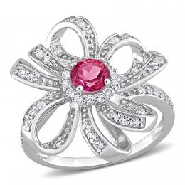 Julianna B Sterling Silver Pink Topaz and White Topaz Flower Cocktail Ring