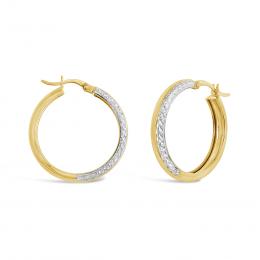 10K Yellow and White Gold Diamond Cut Round Hoops