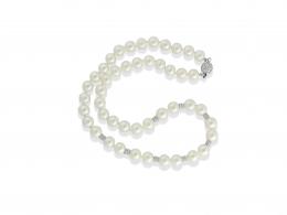 Sterling Silver 8-8.5mm White Pearl Cubic Zirconia Choker with Extender