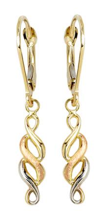 10K Yellow and White Gold Triple Circle Dangle Earrings
