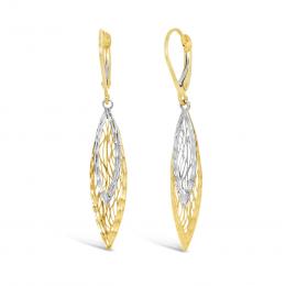 10K Yellow and White Gold Diamond Cut Dangle Earrings