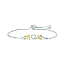 Sterling Silver 10K Yellow Gold 0.04CTW Diamond Mom Bracelet