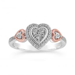 Sterling Silver & 10K Rose Gold Heart 0.11CTW Diamond Ring