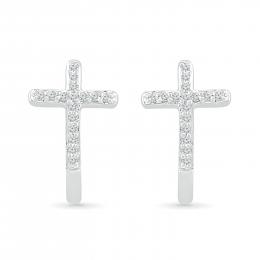 10K White Gold 0.10CTW Diamond Cross Earrings