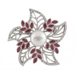Sterling Silver 10-11mm Flower Shaped Freshwater Pearl Brooch