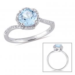Julianna B 14K White Gold Blue Topaz and 0.10CTW Diamond Floral Halo Ring