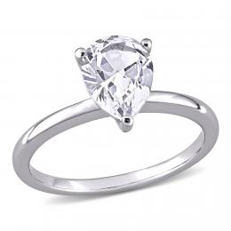 Julianna B 10K White Gold Pear Shape Created White Sapphire Solitaire Ring