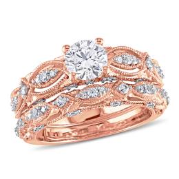 Julianna B 10K Rose Gold Created White Sapphire & Diamond Bridal Set