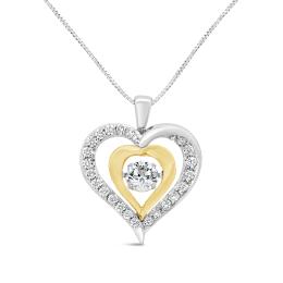 10K White & Yellow Gold Lab Grown 0.77CTW Dancing Diamond Heart Pendant