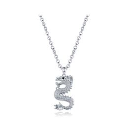 Sterling Silver Cubic Zirconia Dragon 24" Pendant
