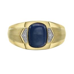 10K Yellow Gold Created Blue Star Sapphire and Diamond Men's Ring