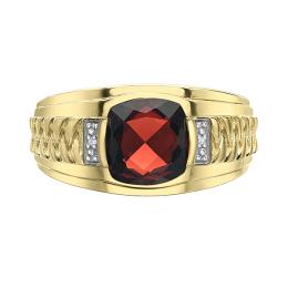 10K Yellow Gold Garnet and Diamond Men's Ring