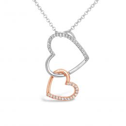 Sterling Silver 10K Yellow Gold 0.03CTW Diamond Heart Infinity Pendant
