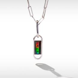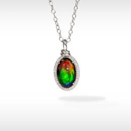 KORITE STARLIGHT Sterling Silver 18K Gold Plated Ammolite & White Topaz Necklace