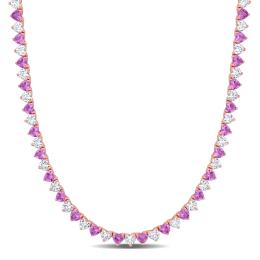 Sterling Silver Created Pink Sapphire & Created White Sapphire Necklace