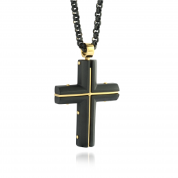 Stainless Steel Black& Gold Matte Cross Necklace