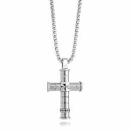 SteelX Stainless Steel 24" Cross Pendant with Black Cubic Zirconia