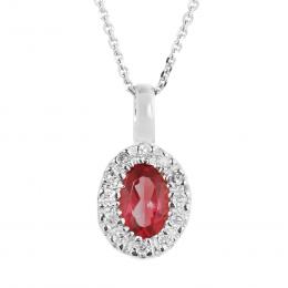 10K White Gold 0.05CTW Diamond and Ruby Halo Pendant