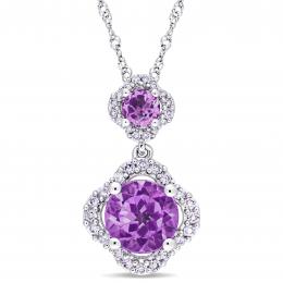 Julianna B 14K White Gold Amethyst and 0.20CTW Diamond Quatrefoil Tiered Pendant