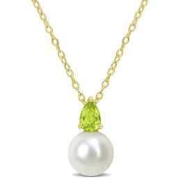 Julianna B Yellow Plated Sterling Silver Peridot & 8.5-9MM Pearl Pendant
