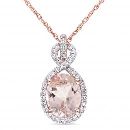 10K Rose Gold Morganite and Diamond Infinity 17" Pendant