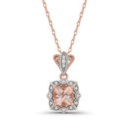 10K Rose Gold Morganite and Diamond 18" Pendant