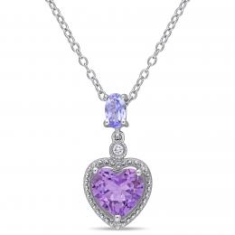 Julianna B Sterling Silver Amethyst, Tanzanite & 0.017CTW Diamond Heart Pendant