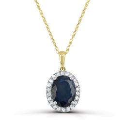 10K Yellow Gold Sapphire and Diamond Halo Pendant
