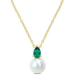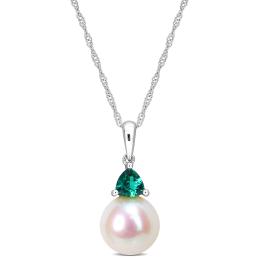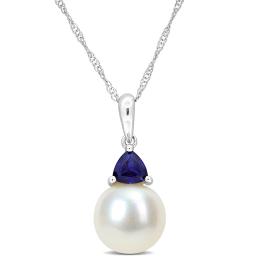 Julianna B 10K White Gold Created Blue Sapphire & 8-8.5MM Pearl Pendant